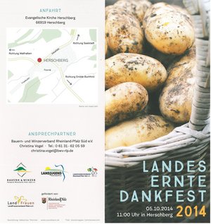 Am 05.10.2014 fand in Herschberg, in der Westpfalz, das zentrale Landeserntedankfest des Bauern- und Winzerverbandes Rheinland-Pfalz Süd e.V. statt, welches traditionell von der Landjugend RheinhessenPfalz mit organisiert und gestaltet wird.