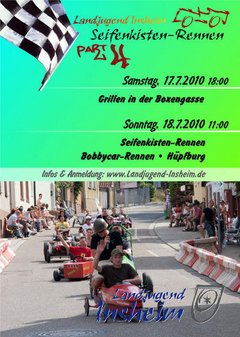 Am Sonntag, 18.7.2010 findet das vierte Seifenkisten-Rennen der Landjugend Insheim statt.