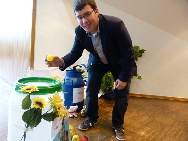 Die Landjugend teilte an die Delegierten Bälle aus, die diese mit ihren Wünschen an das neue Präsidium beschriften konnten. Im Anschluss wurden die Bälle eingesammelt und in drei Behältern nach den Themen Weinbau, Ackerbau/Obst- und Gemüsebau und Viehzucht sortiert.