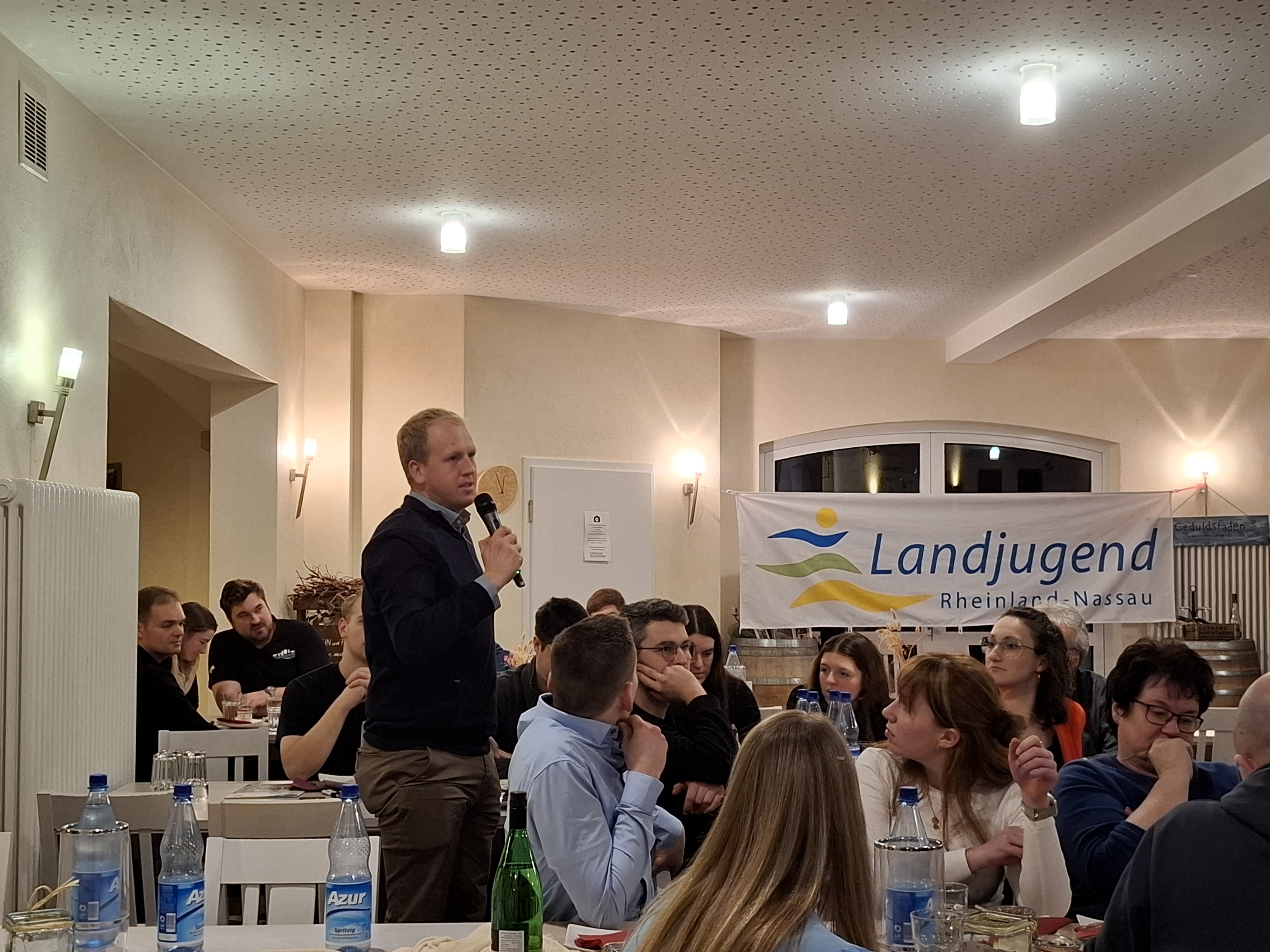 Zur Vorbereitung auf die Podiumsdiskussion haben die beiden Landjugendverbände in Rheinland-Pfalz ein gemeinsames Positionspapier erarbeitet, in dem sie die Positionen und Forderungen der Landjugend in Bezug auf Landwirtschafts- und Weinbaupolitik, Leben im ländlichen Raum, Jugendpolitik sowie Digitalisierung und künstliche Intelligenz darstellen. Der Abend wurde durch Maria Müller, 1. Vorsitzende der Landjugend Rheinland-Nassau, und Tobias Füge, 1. Vorsitzender der Landjugend RheinhessenPfalz, eröffnet. Sie begrüßten die anwesenden Politiker, Ehrengäste und Landjugendlichen und hoben die Bedeutung politischen Engagements junger Menschen für die Demokratie im ländlichen Raum hervor.